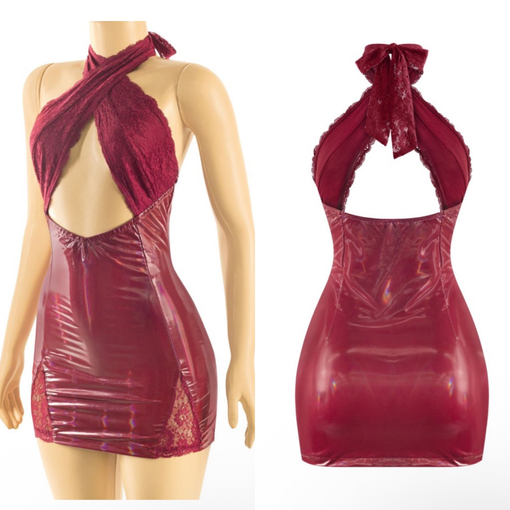 Glossy lace halter dress
